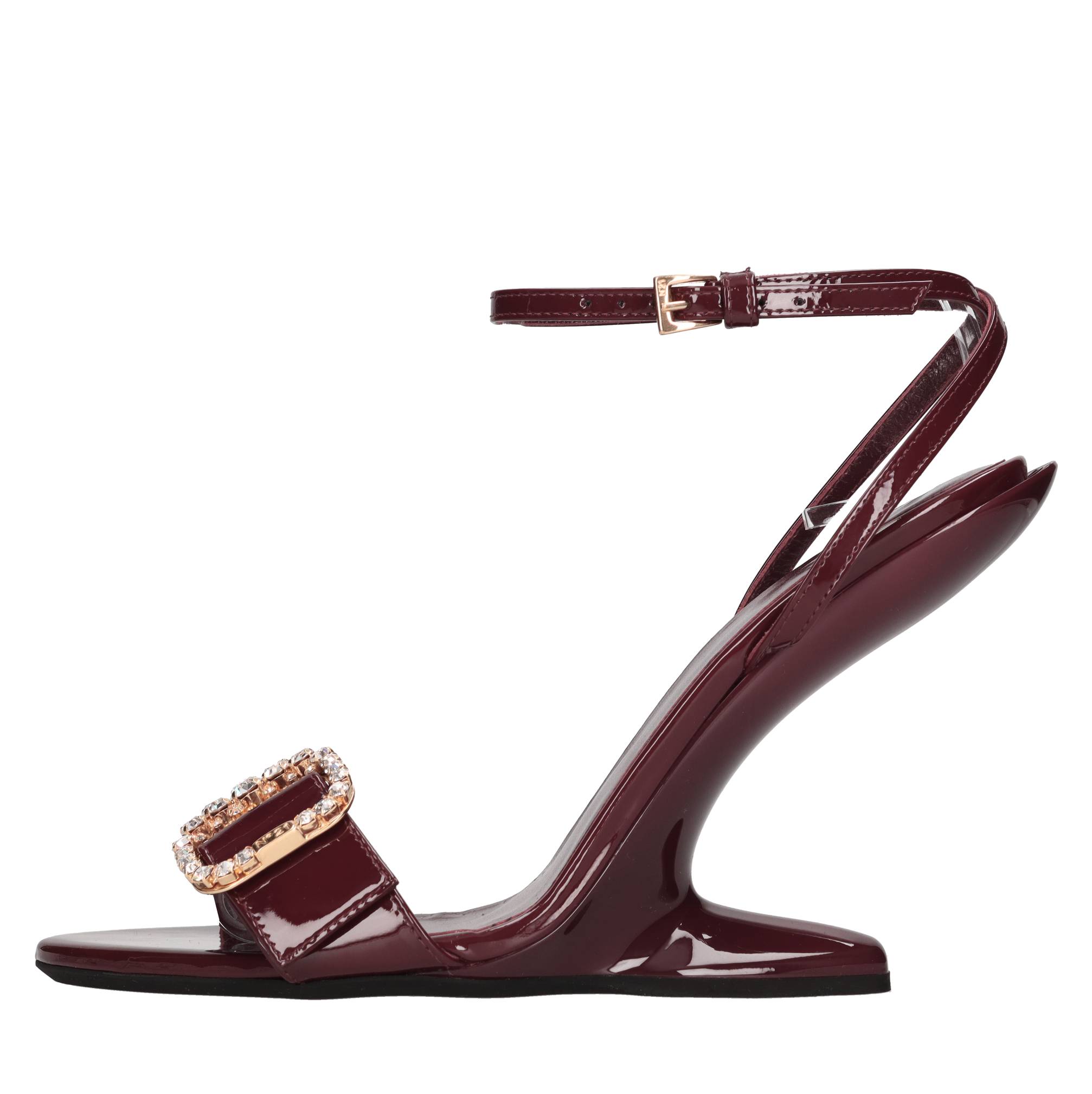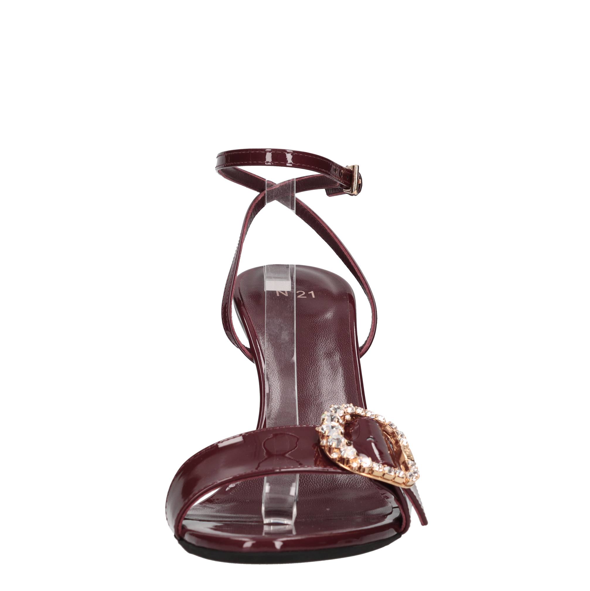 Geschilderde sandalen. Verfraaid met juweel gesp. Rubberen buitenzool. Lederen bovenkant.