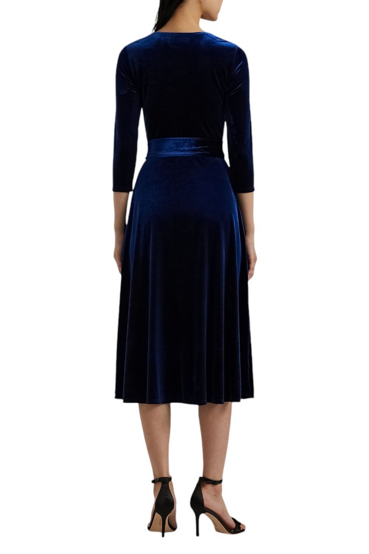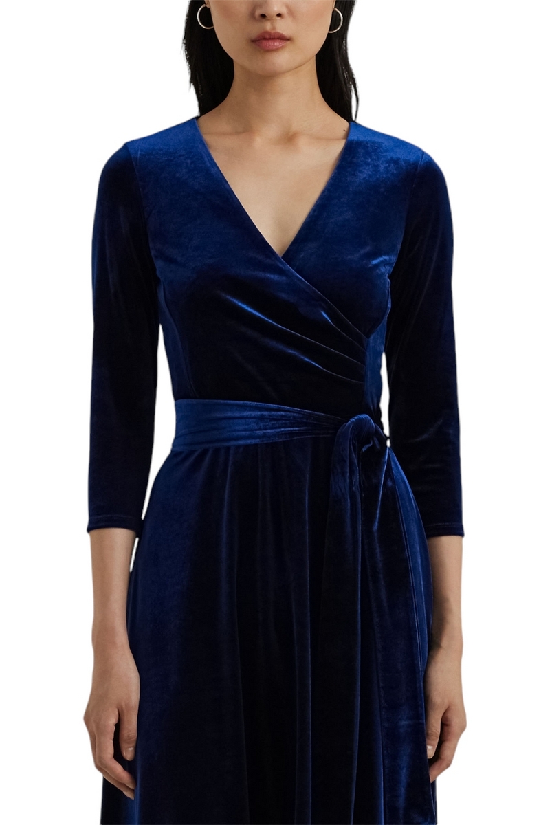 Jurk van Lauren Ralph Lauren, gemaakt van zweterig fluweel en elastisch voor een mooie glans en een zachte hand. Silhouette naar A. Cross halslijn. Driekwart mouwen. Gordellussen. Het wordt geleverd met een verwijderbare riem. Stitching op de corpetto. Gebladerd op de corpetto. Samenstelling: extern: 90% gerecycled polyester, 10% elastaan. Voering: 88% gerecycled polyester, 12% elastaan. Wasmachine of stomerij.