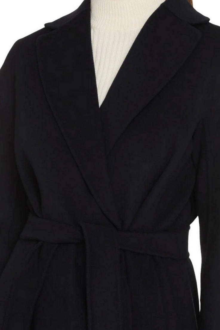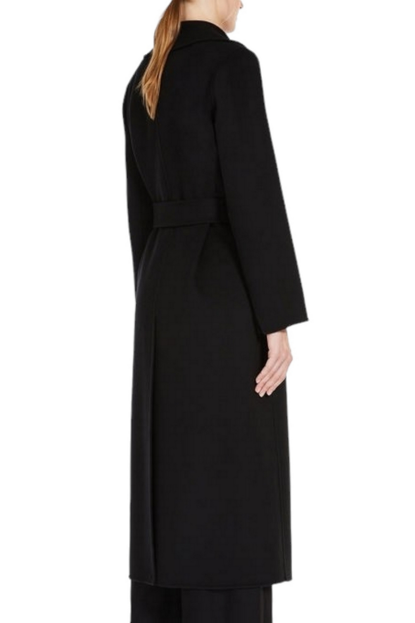 MaxMara Coat S lang in fijne dubbele drap van pure hand genaaide wol, gekenmerkt door een dressing silhouet met brede rever hals, ronde mouwen en zakken ingevoegd in de zijkanten. Model verwijderbaar, afgewerkt met kleine spleten aan de ondermouw en centrale afstand aan de achterkant. De sluiting met bijpassende riem laat toe om het silhouet te markeren. Samenstelling: 100% vierge wol - exclusief bindingsgaren, voering: 100% zijde.