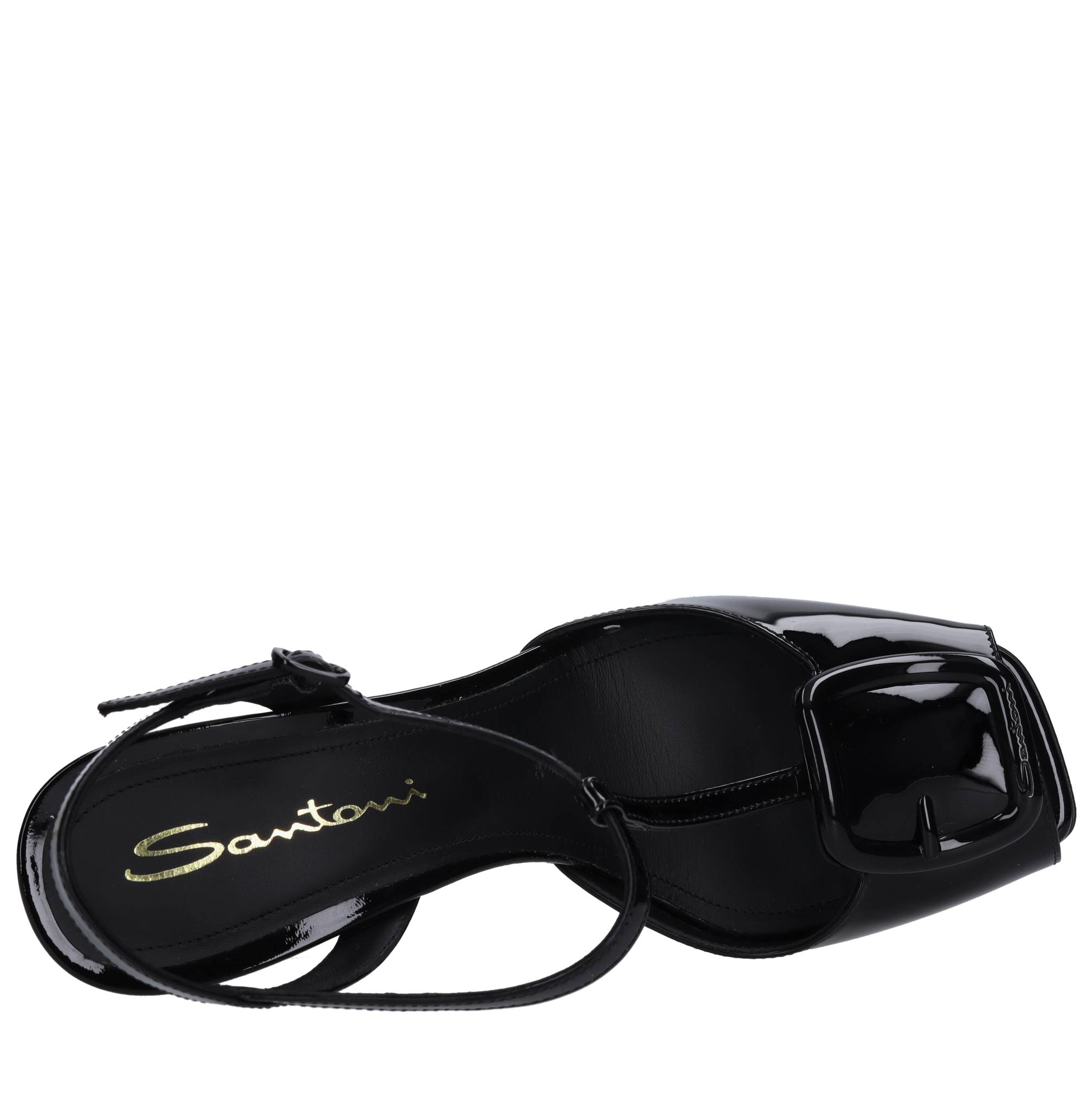 Gepolijste leren sandalen. Lederen buitenzool. Lederen bovenkant. Verstelbare leren band.