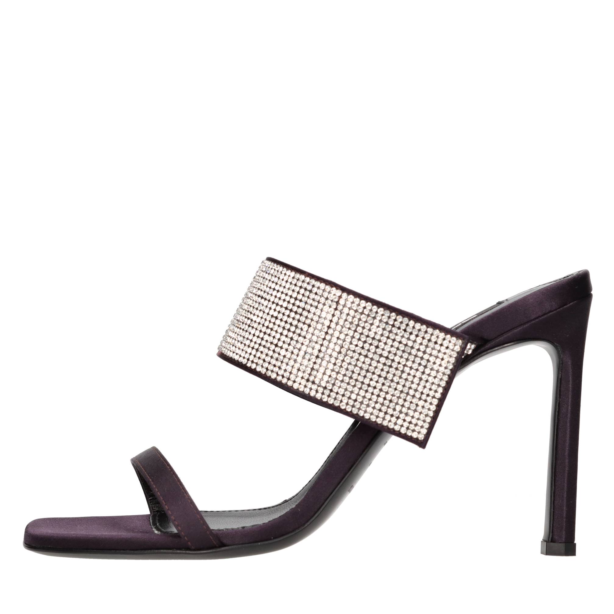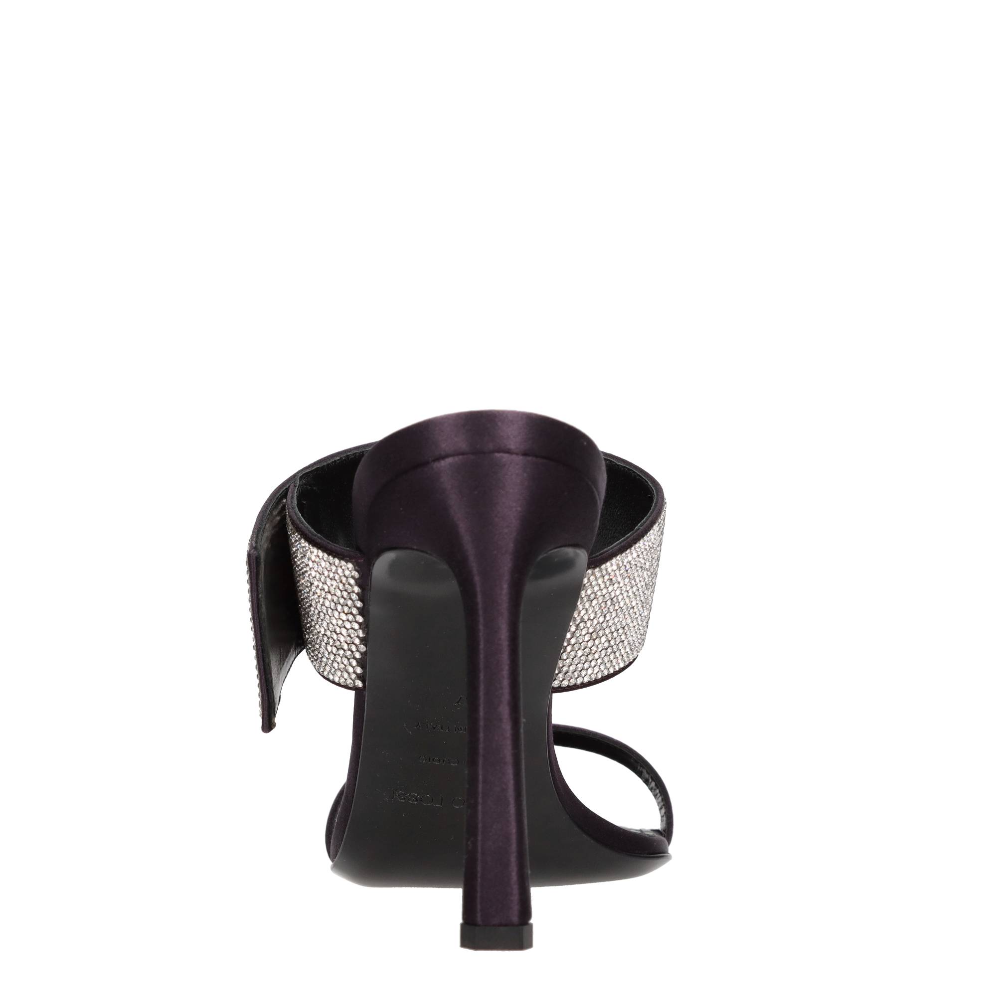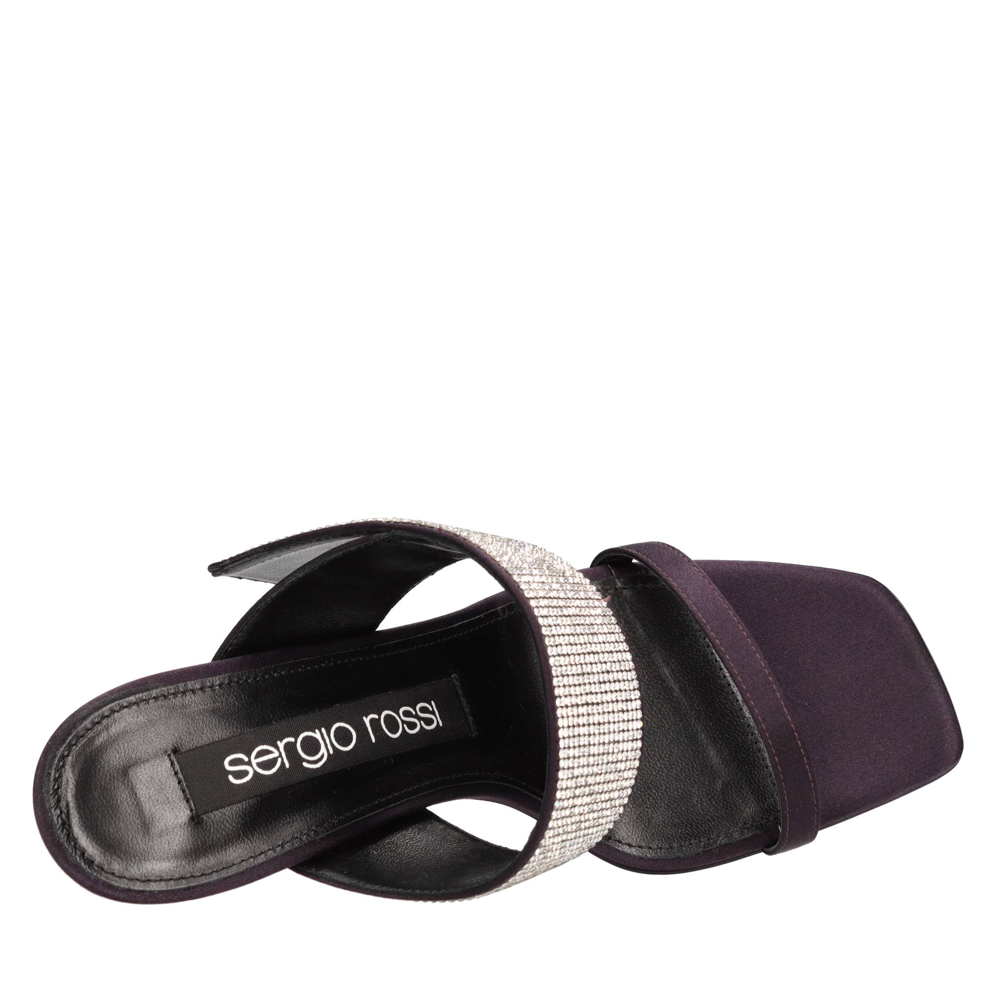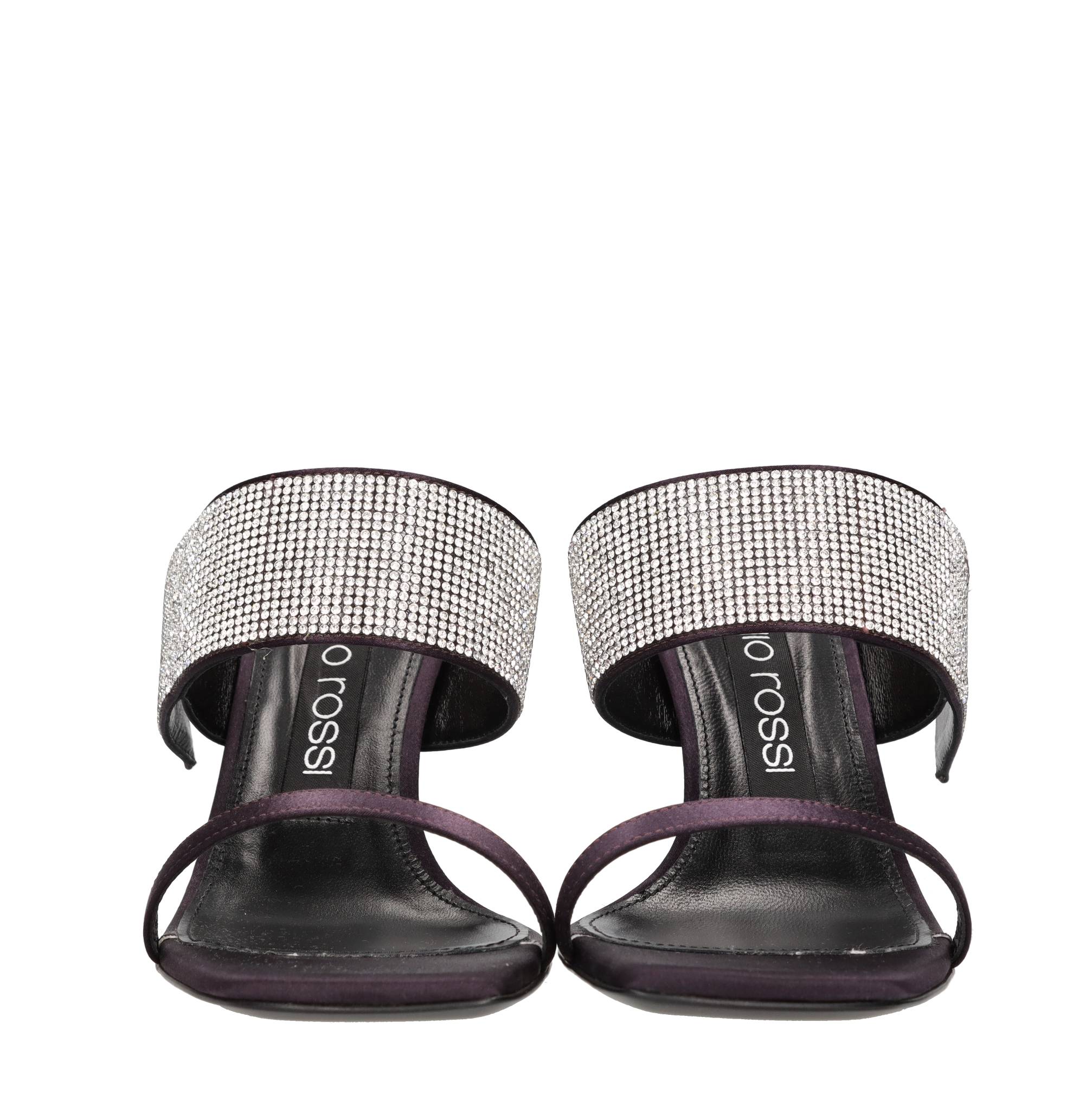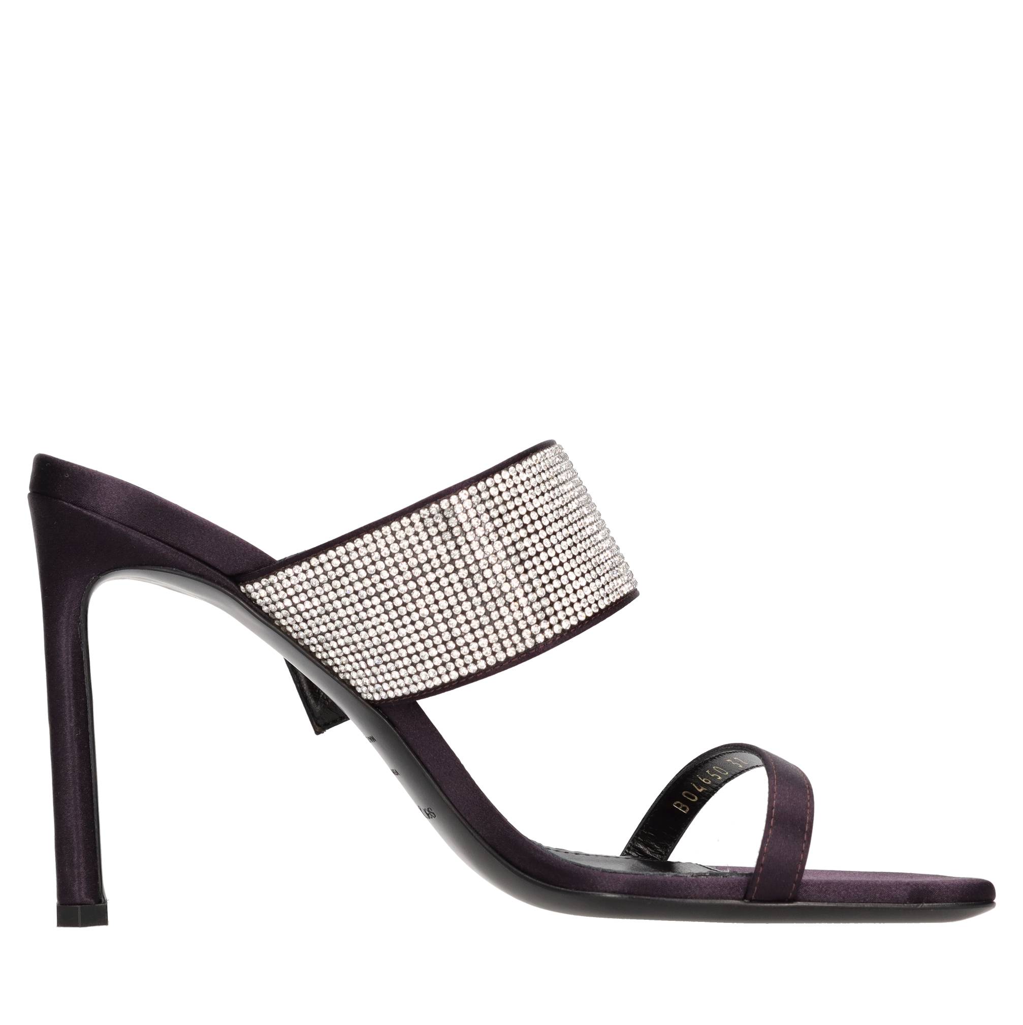 Mules in satijn en strass. Buitenzool in leer. Logated lederen bovenkant.