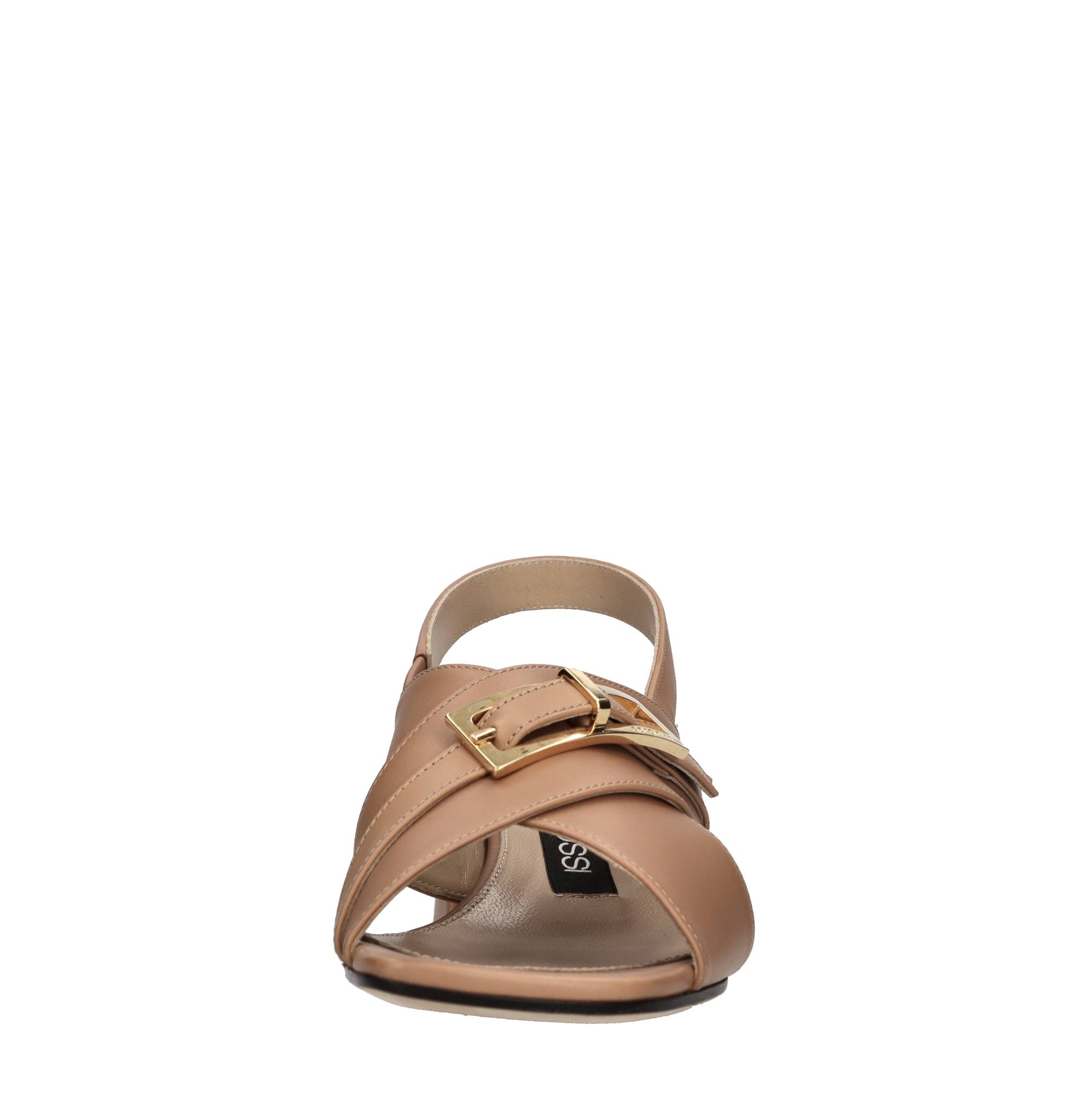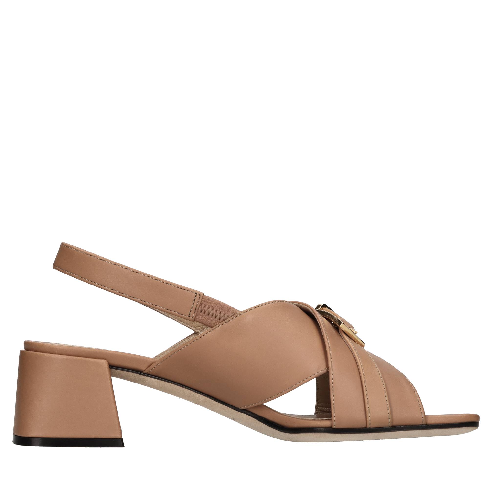 Lederen sandalen. Decoratieve gouden kleur gesp. Buitenzool in leer. Logated lederen bovenkant.