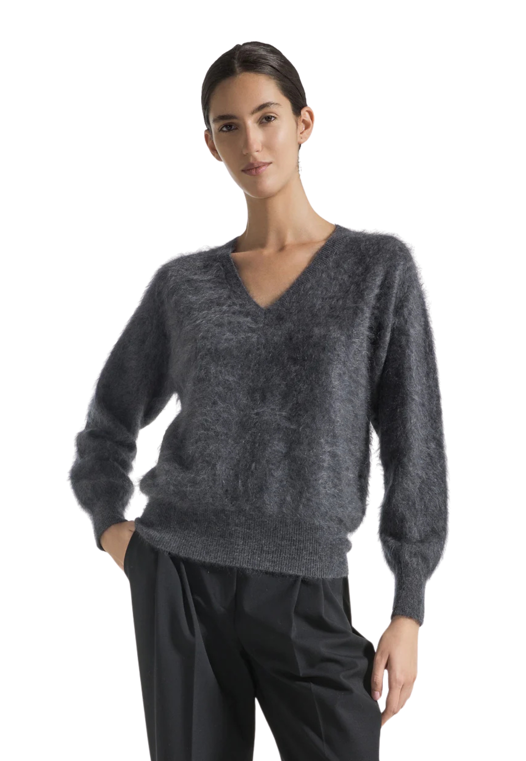 100% kasjmier pullover met gaasbont, zachte pasvorm