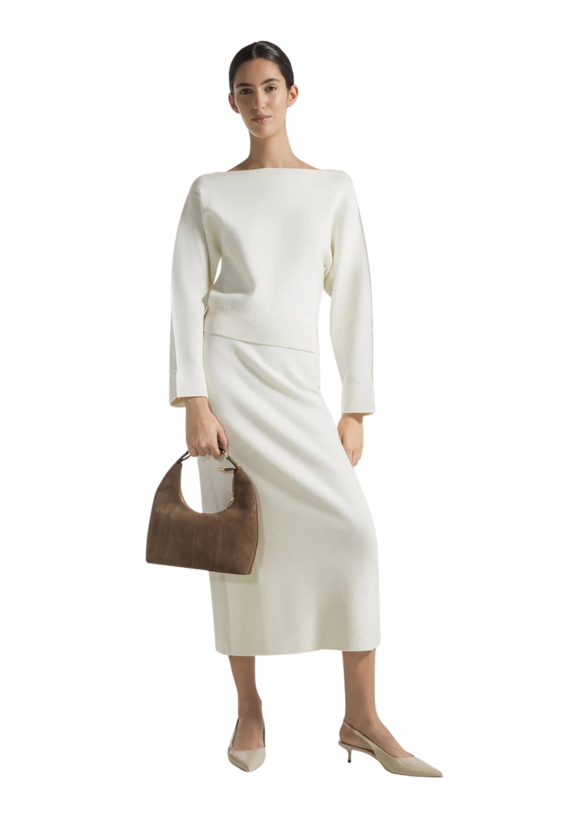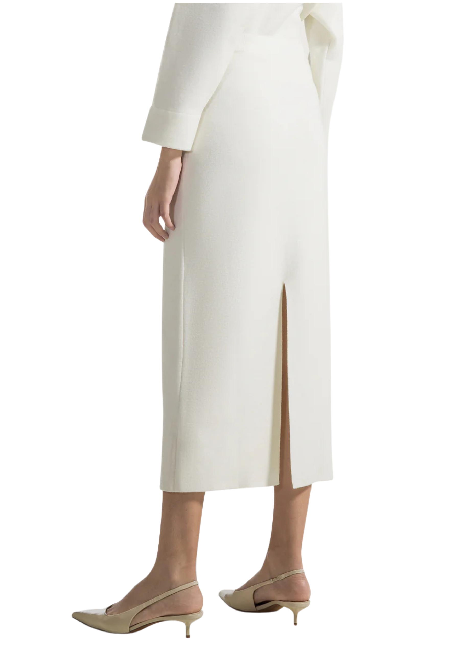 Lange rok in wol, elastische taille en gesneden op de rug.