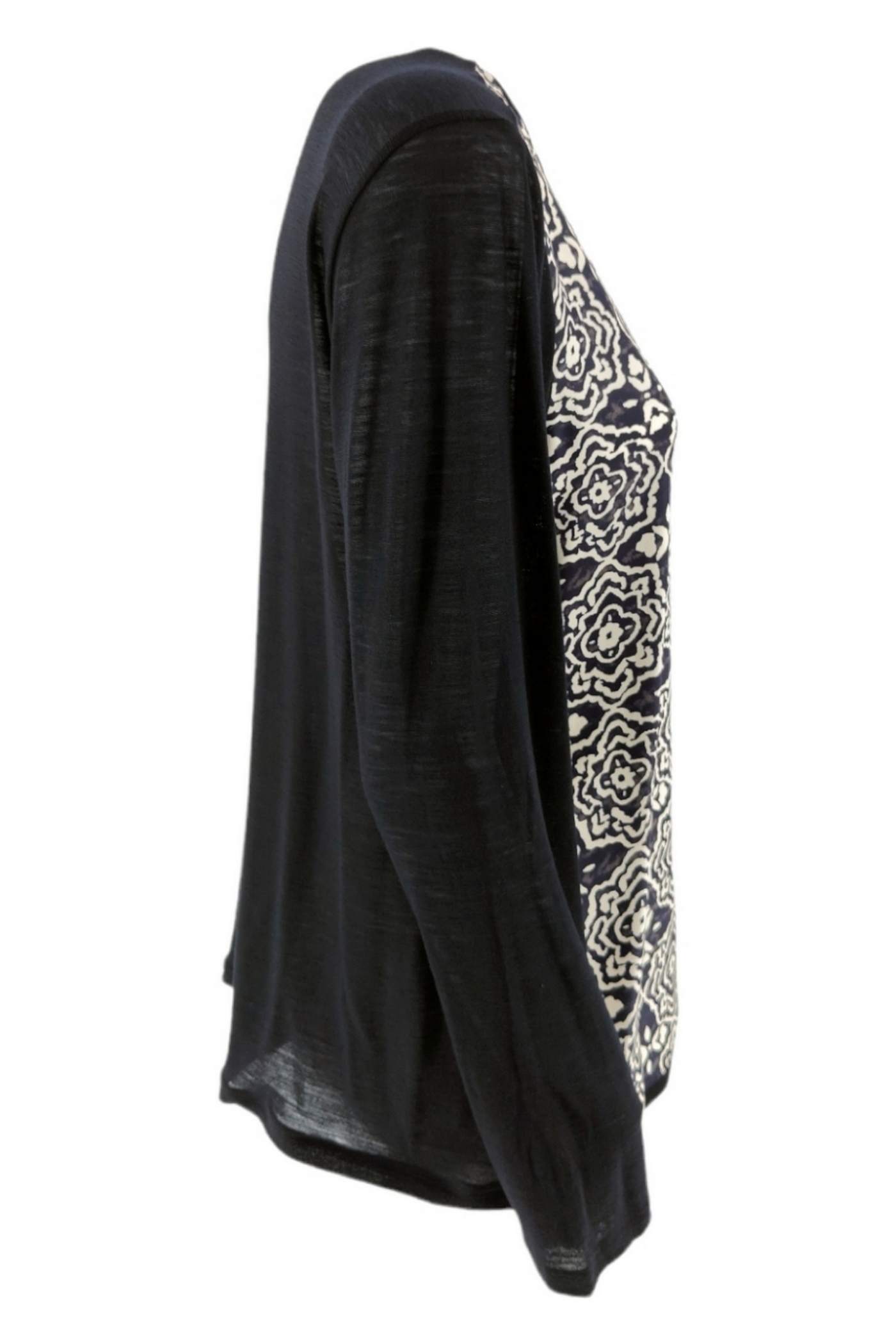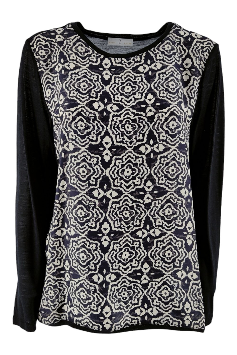 T-shirt bemanning nek Lange mouwen Bloem Fantasy Viscose Front Diet jersey Samenstelling 1: 80% wol, 20% nylon Samenstelling 2: 100% zijde